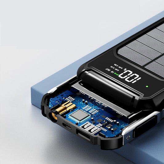 Solar Power Bank 20,000mAh – 4-Port Portable Charger with Built-in Cables & Solar Backup