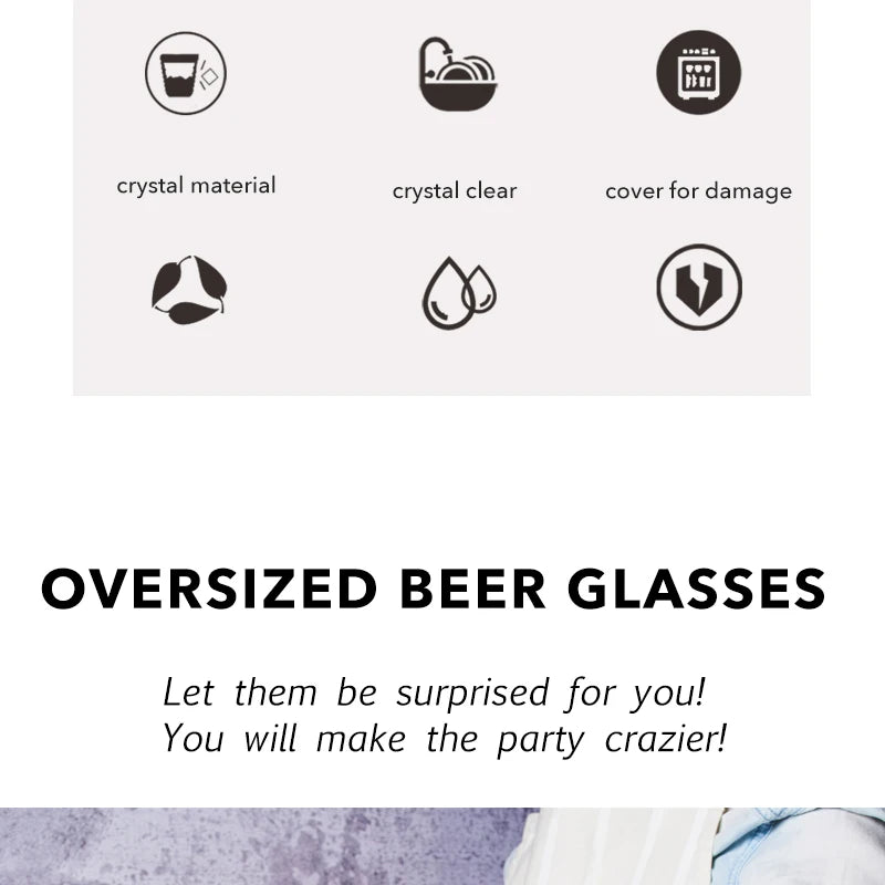 Extra Large Beer Glass Goblet | 108 oz Crystal Wine & Whiskey Glass