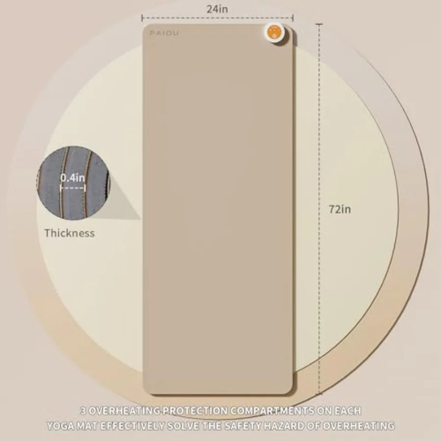 The adjustable temperature control lets you find your ideal warmth, while the anti-slip surface keeps you stable and secure during exercise or meditation. At a cushioned 0.4 inches thick, it provides just enough padding for comfort without compromising your balance or form.
